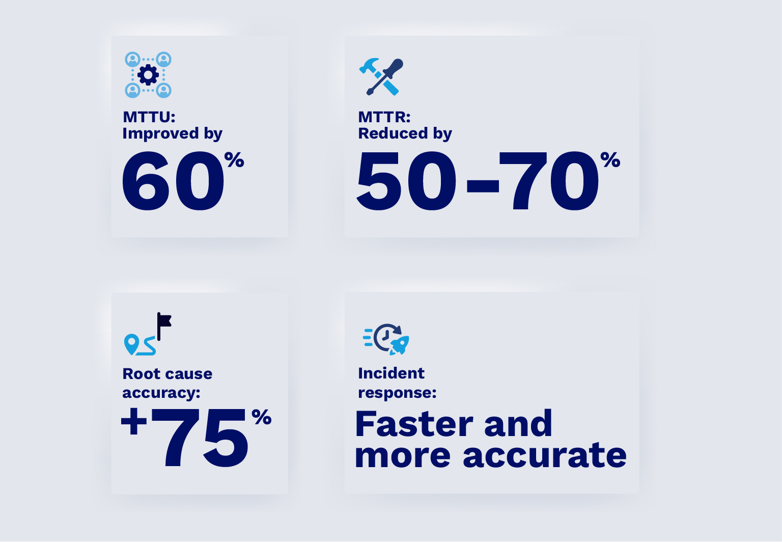 Mean Time to Respond, Repair, Resolve & Recover (MTTR) drops from hours to minutes, empowering your team to solve for the problem before customers are impacted.